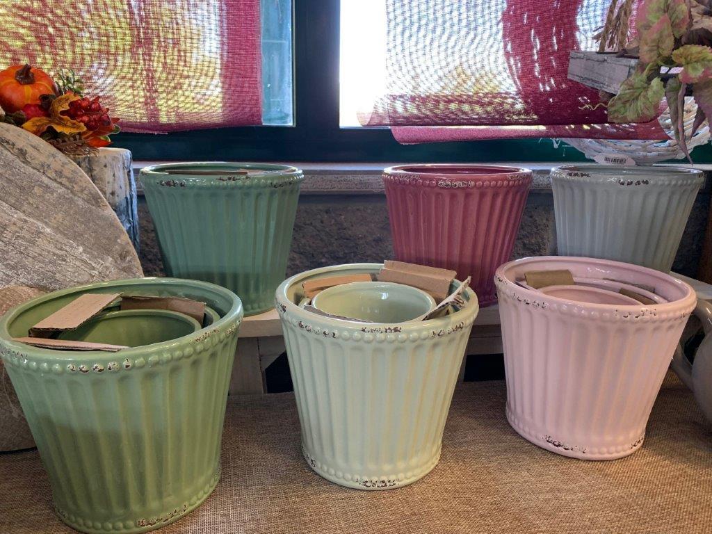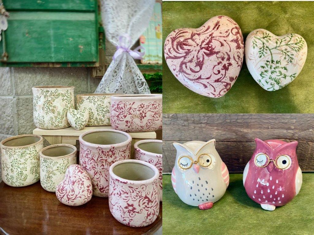 Piccoli oggetti e articoli decorativi, coprivasi in ceramica per piante e arredo, idee regalo.